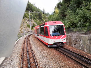 12:30 civarı Chur'a varıyoruz. Bizim komşular, Çinli genç bir çiftmiş meğerse. Önce bize ayrılan yere sıkışmaya çalışıyoruz, sonra onlar arkadaki koltuğa geçiyorlar. Bu arada yemek servisi de başlayacak. Bir de bakıyoruz servis yapan teyze onların tabağını çatalını alıp arka koltuğa geçiriyor. Sonrasında anlıyoruz ki bu kompartmanda biz ve genç Çinli çiftten başka kimse olmayacak. Peki o rezerve edilmiş yerler? Gelmeyenler kendileri kaybeder! Chur istasyonunda normal vagonlar ayrılıyor, bizimkiler gibi panaromik vagonlar takılıyor ve ver elini dağlar yeniden. (Faydalı bilgi: St. Moritz yükseklik 1.775 m, Chur ise 585 m). Bu Glacier vagonların panoramik görüşü iyi de güneş gelen taraf insanı fena yakıyor, üstelik camdan foto çekince yansıma yapıyor (herşey denendi, cama yapışık, camdan uzak, gölge alan vs, ille birşeylerin yansıması manzaranın içinde, hiç değilse tayf benzeri bir görüntü oluyor resmin içinde) Bu arada bu seyahatin sebebi arkana yaslanıp içkini yudumlarken manzaranın keyfini çıkarmak mı? Yoksa, zırt pırt resim çekmeye çalışıp anı kaçırmak mı? Tartışılır! Yolun bu tarafında o kadar çok köprü, tünel, viyadük geçmek yok, dağın kıyısından yol alıyoruz. Zaman zaman da dik yamaçlara tırmanıyoruz. Bu yamaçlara gelindiğinde rayların ortasında yer alan dişlilere takılıyor lokomotifler.